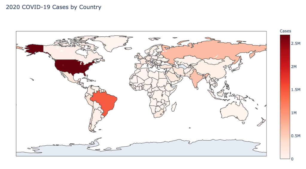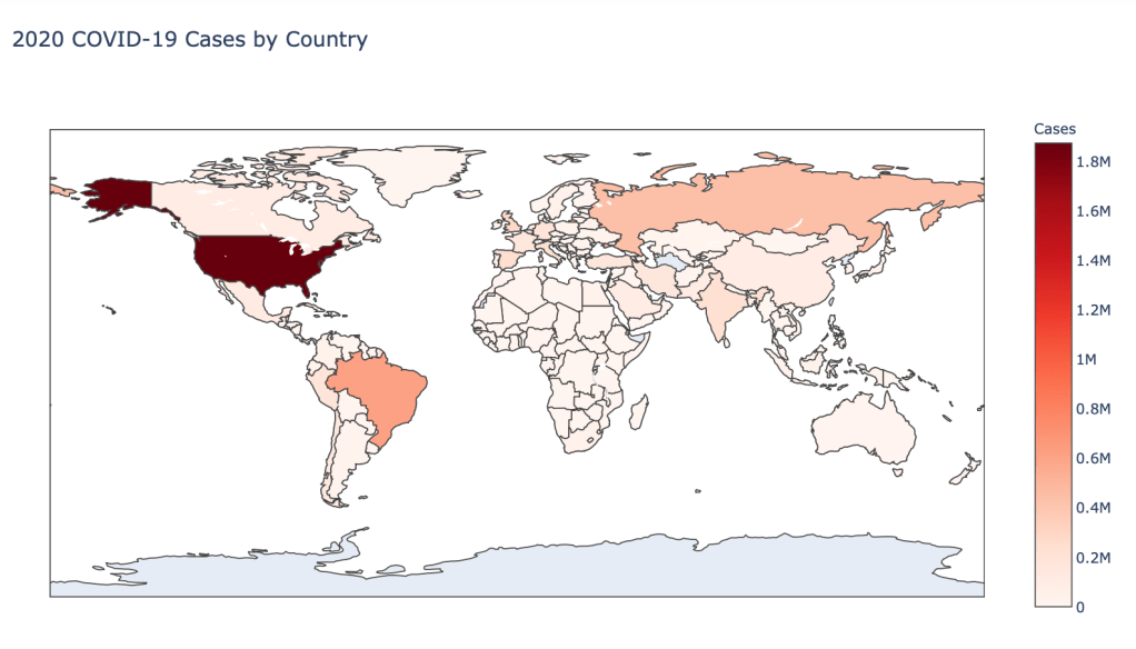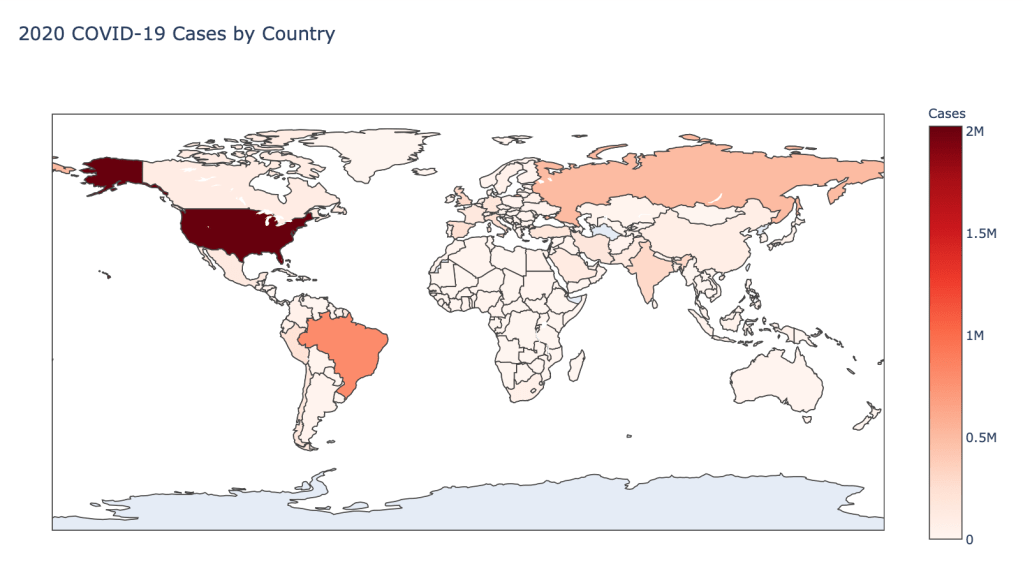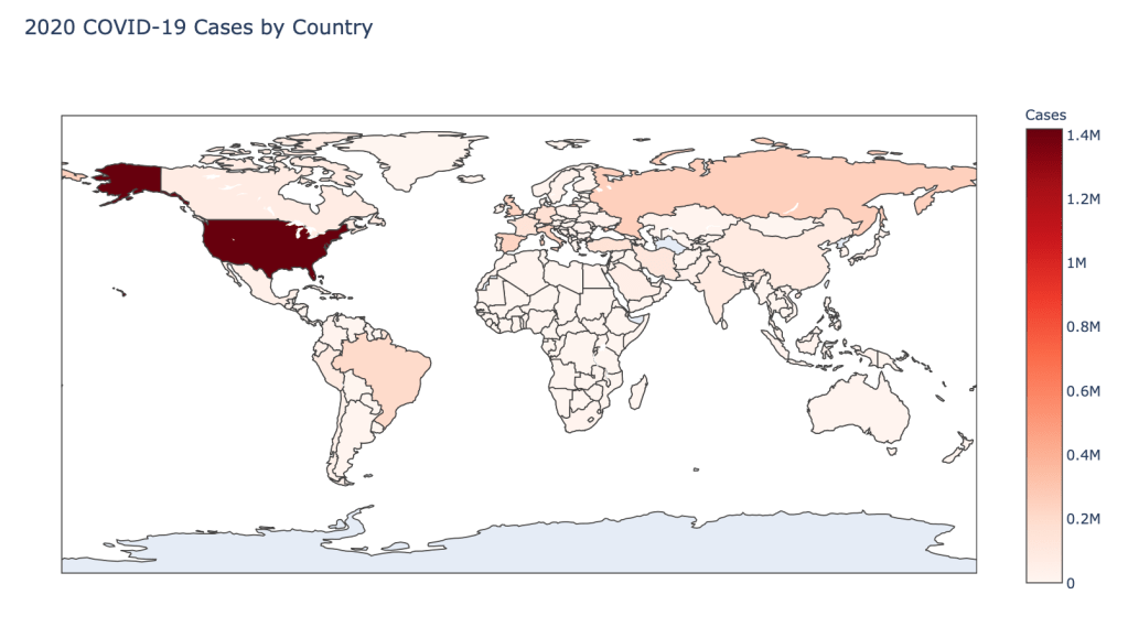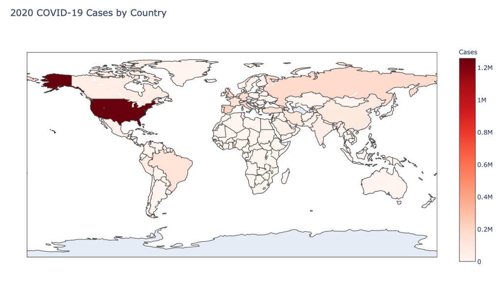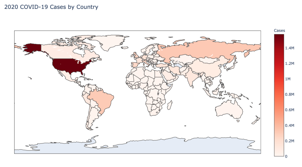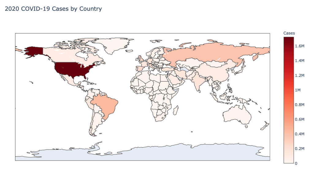 The point of this blog is not to try to develop a model or anything of the sort to detect COVID-19, as a poorly created model could cause more harm than good. This blog is simply to generate visualizations based on publicly available data about COVID-19. These visualizations will ideally help people understand the global effect of COVID-19 and the exponential pace at which cases are developing across the world and in the United States.