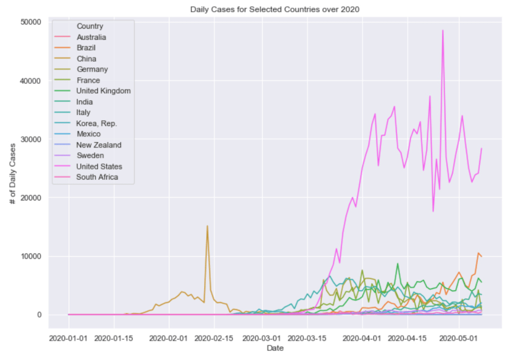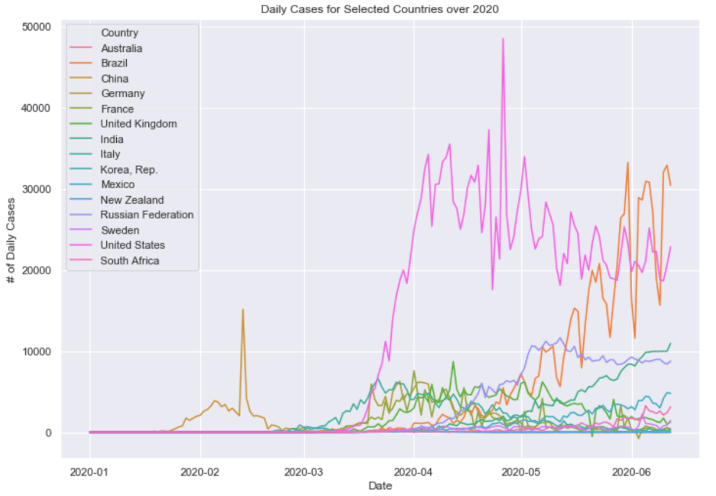 If you are interested in seeing the code used to generate these visualizations, the python code and Jupyter Notebook can be found on GitHub. In addition to the code, the visualizations for additional countries and states as well as data tables are available in the Jupyter Notebook.