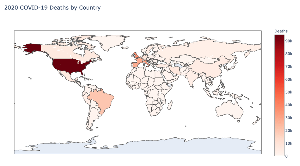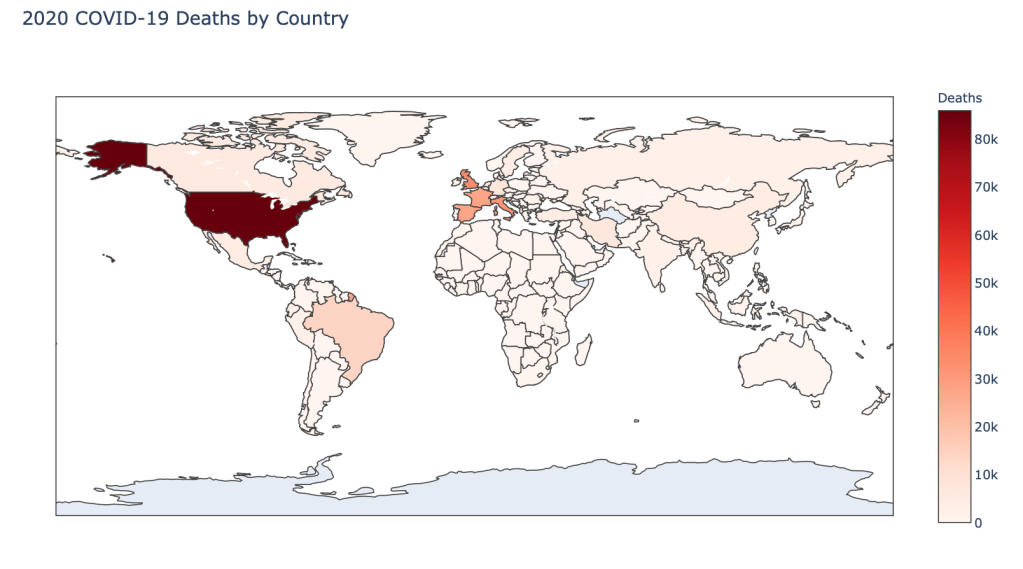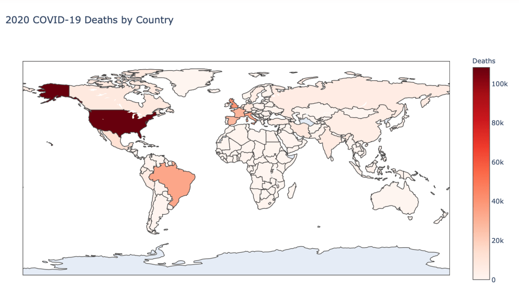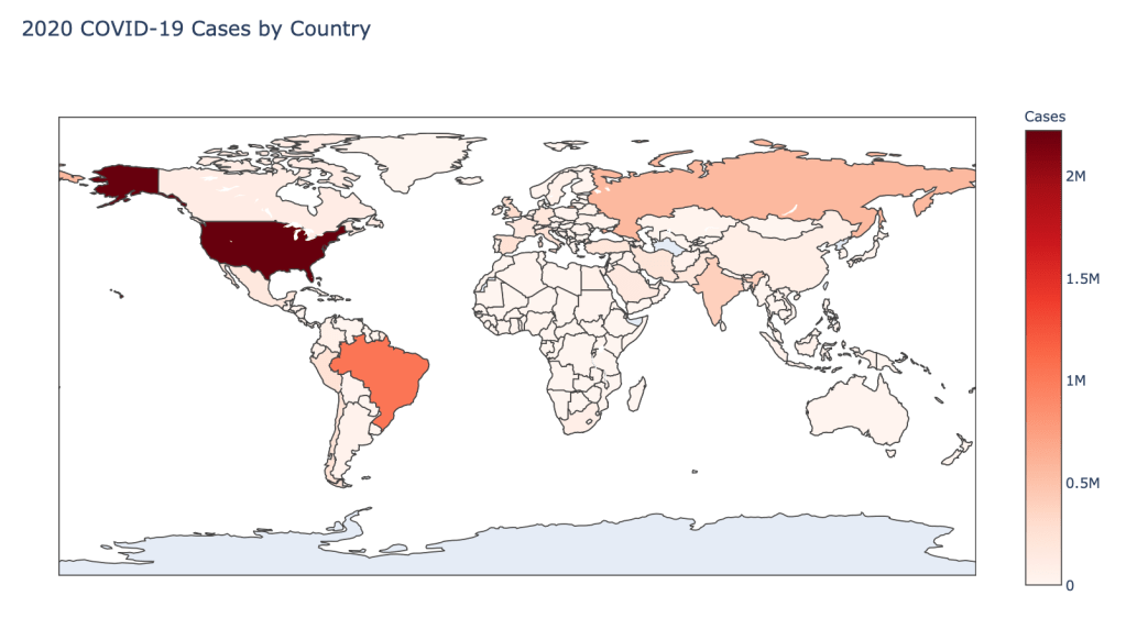 I am continuing a series of blog posts concerning the COVID-19 crisis that contain some world map visualizations and US State map visualizations of metrics I have found to be useful in analyzing the situation. This week I am also adding some country plots of daily cases over time to see how well certain countries and states are "flattening the curve". COVID-19 is affecting countries all over the world and in many places the number of cases is still growing exponentially everyday. This blog post with the associated Jupyter Notebook will look at different measures of how bad the outbreak is across the world and in the United States. Each metric will be displayed in a global or US choropleth map. Additionally, this exercise sets up repeatable code to use as the crisis continues and more daily data is collected.