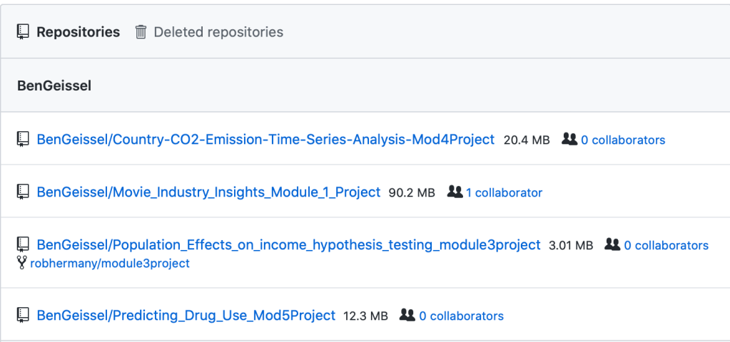 As a student in the Flatiron School Data Science Immersive Program in Chicago, I have encountered a problem that I believe many other tech bootcamp students have likely encountered: Hundreds of unwanted Github repositories. This problem came about because of the many online labs we have to complete as students. Anytime a repository is cloned in order to work on the lab locally, it creates a new repository on your Github account. As I am approaching the beginning of my career search, I wanted to clean up my Github page for potential employers to view. These employers will not want to have to search through 200+ repos in order to find the five repos I actually want them to see. Unfortunately, in order to delete a single repository on Github it requires clicking through about three pages, manually typing in the exact repository name you want to delete, and clicking again to finally delete. So you can see how this would get tiresome after about five repos. I wanted to find a way to automate this process to save myself the trouble.